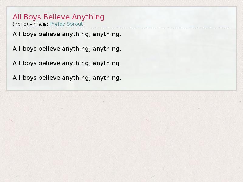 А как ты думаешь, о чем песня "All Boys Believe Anything" ?