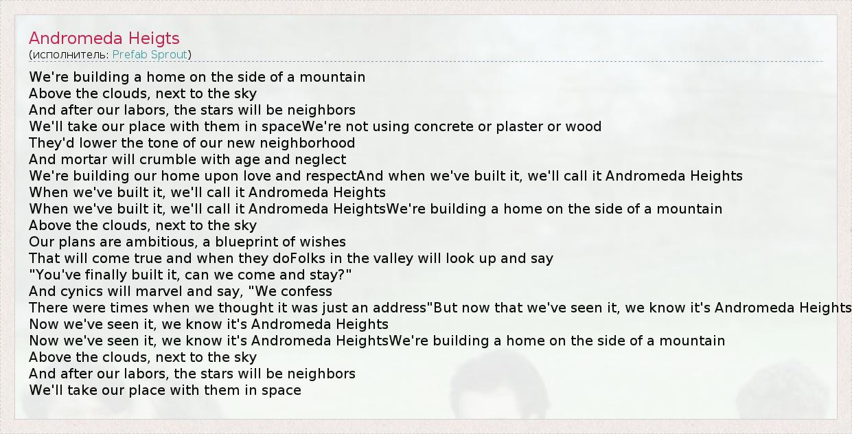 А как ты думаешь, о чем песня "Andromeda Heigts" ?