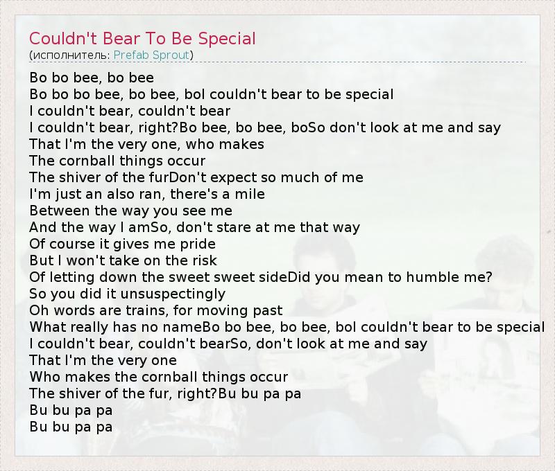 Bo bo bo bee, bo bee, boI couldn't bear to be special