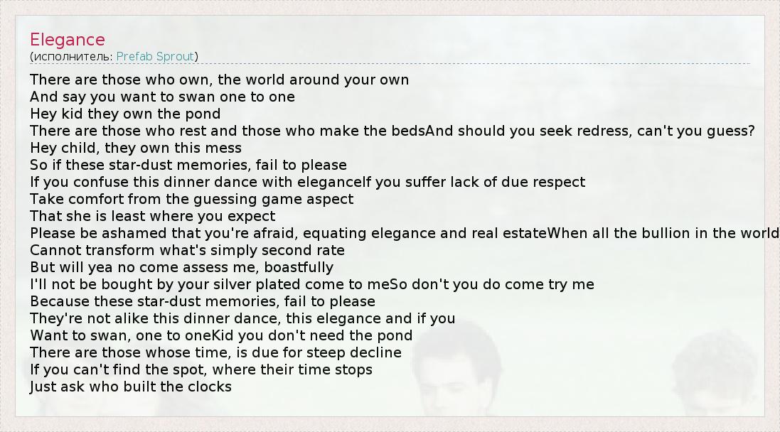 А как ты думаешь, о чем песня "Elegance" ?