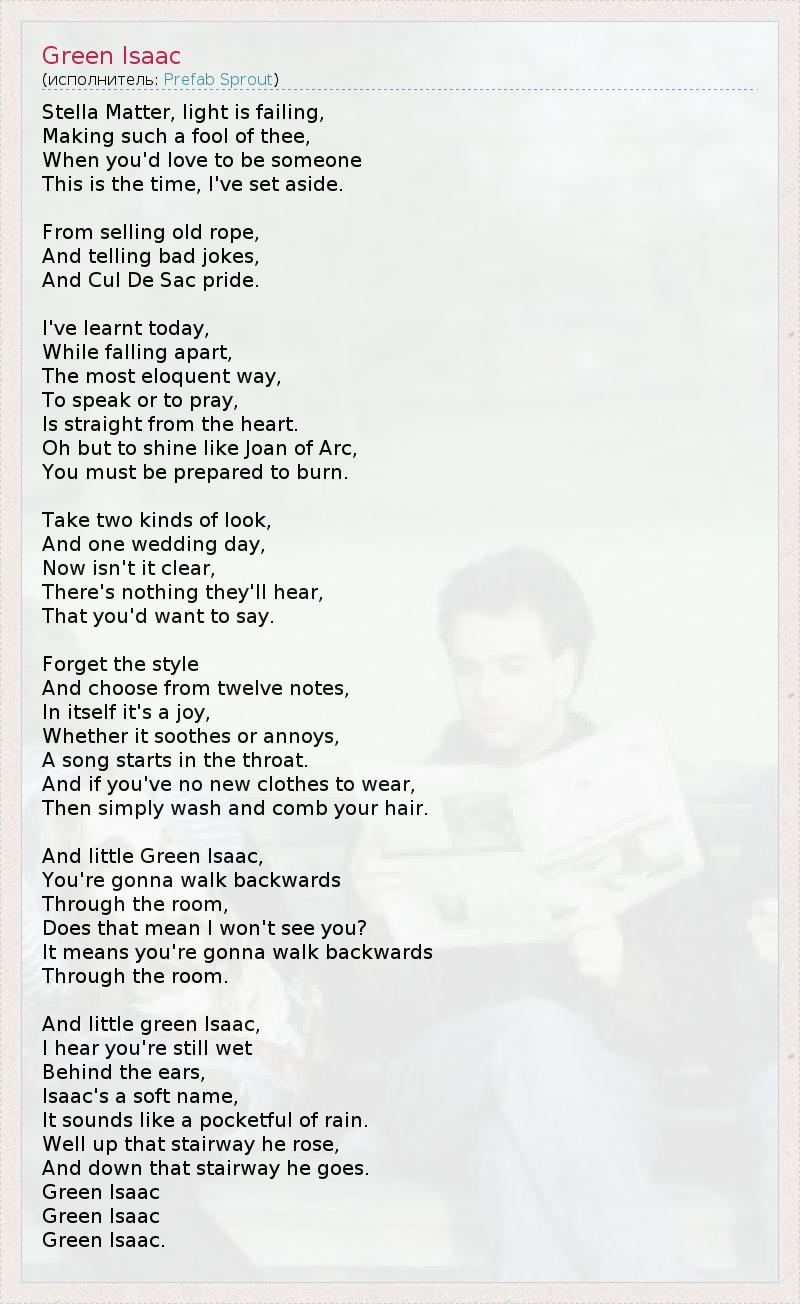 А как ты думаешь, о чем песня "Green Isaac" ?