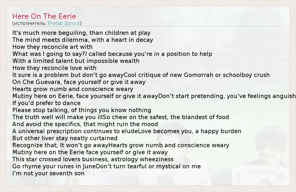 А как ты думаешь, о чем песня "Here On The Eerie" ?