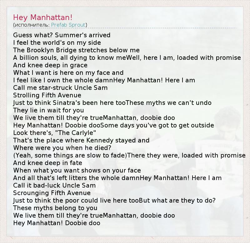 А как ты думаешь, о чем песня "Hey Manhattan!" ?