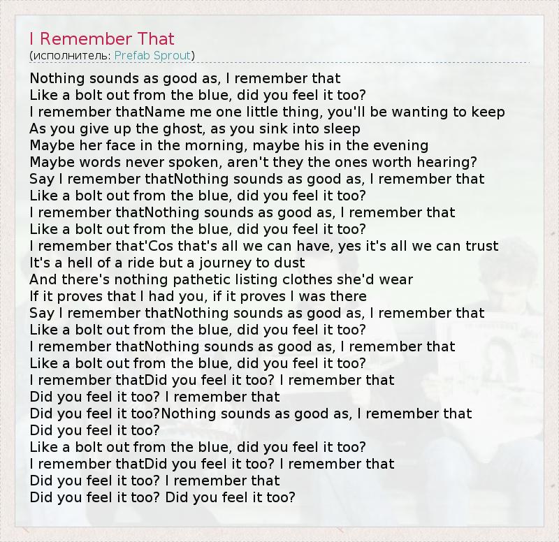 I remember that'Cos that's all we can have, yes it's all we can trust