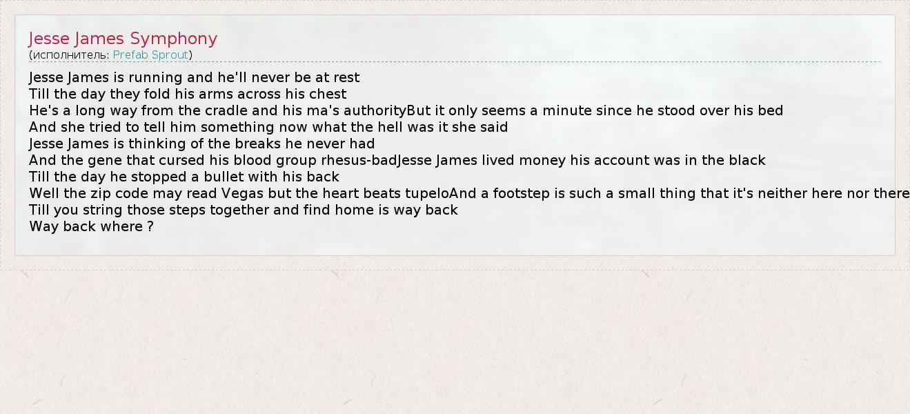 А как ты думаешь, о чем песня "Jesse James Symphony" ?