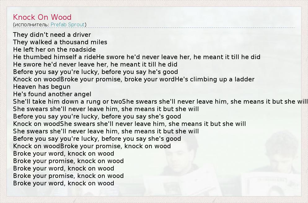 А как ты думаешь, о чем песня "Knock On Wood" ?