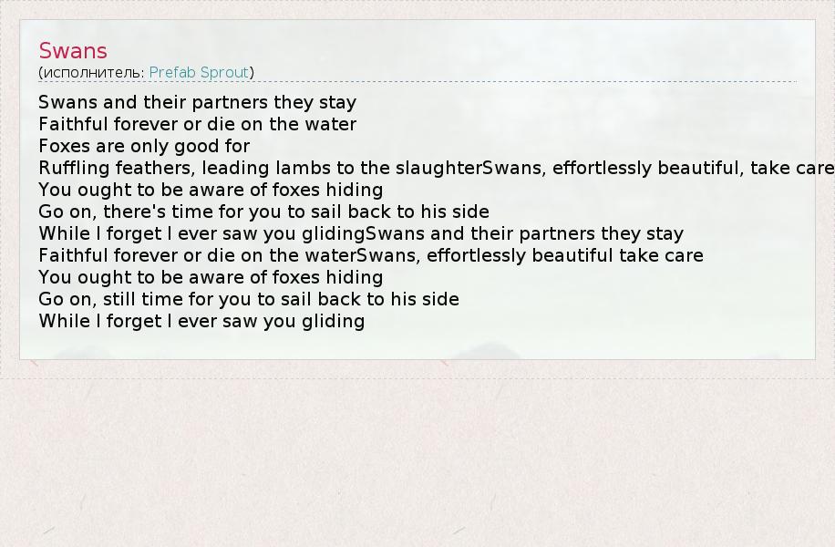 Ruffling feathers, leading lambs to the slaughterSwans, effortlessly beautiful, take care