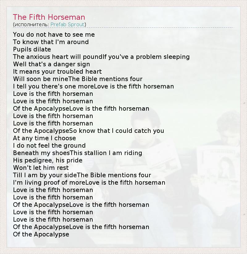 А как ты думаешь, о чем песня "The Fifth Horseman" ?