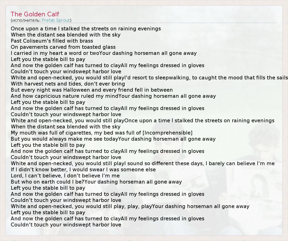 А как ты думаешь, о чем песня "The Golden Calf" ?