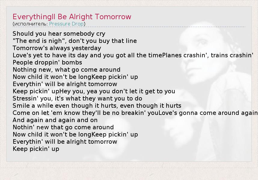 ГлавнаяИсполнителиPressure DropEverythingll Be Alright Tomorrow