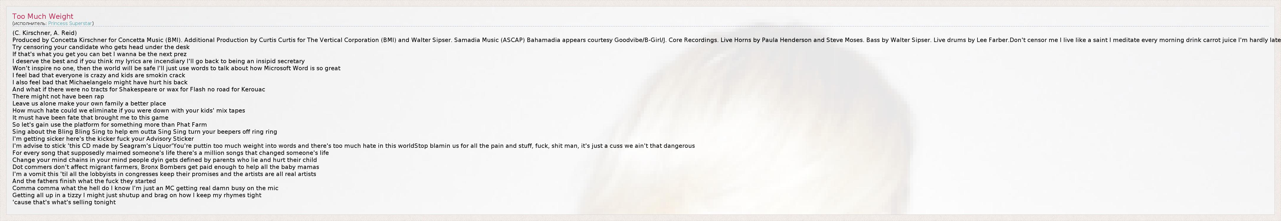 А как ты думаешь, о чем песня "Too Much Weight" ?