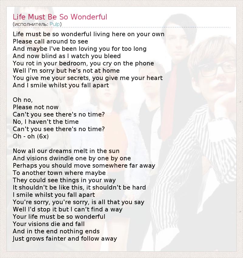 А как ты думаешь, о чем песня "Life Must Be So Wonderful" ?