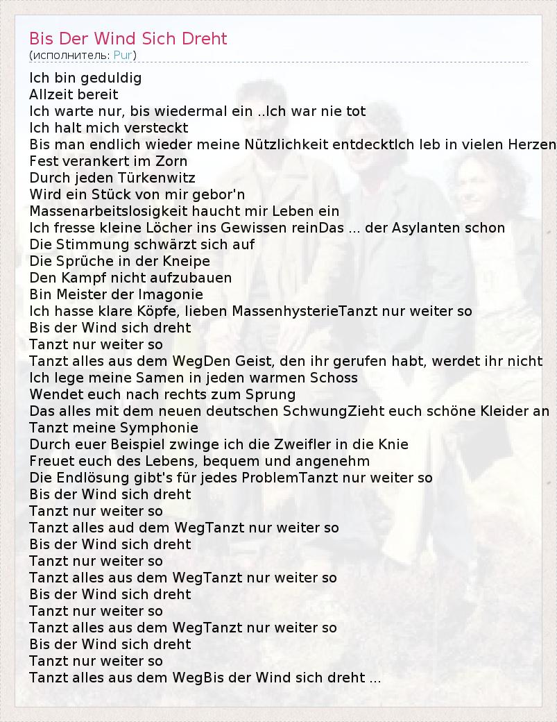А как ты думаешь, о чем песня "Bis Der Wind Sich Dreht" ?