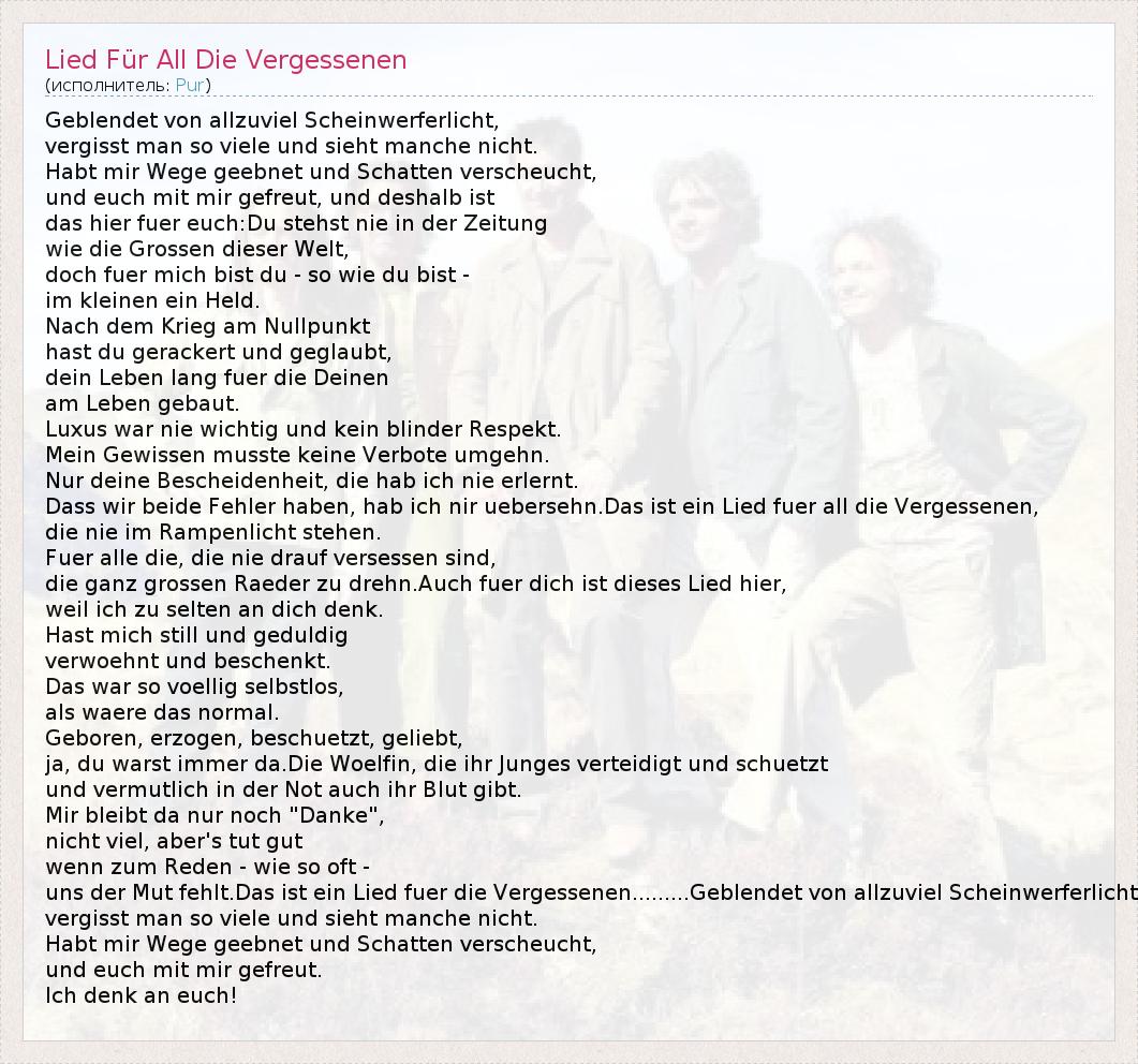 ГлавнаяИсполнителиPurLied Für All Die Vergessenen