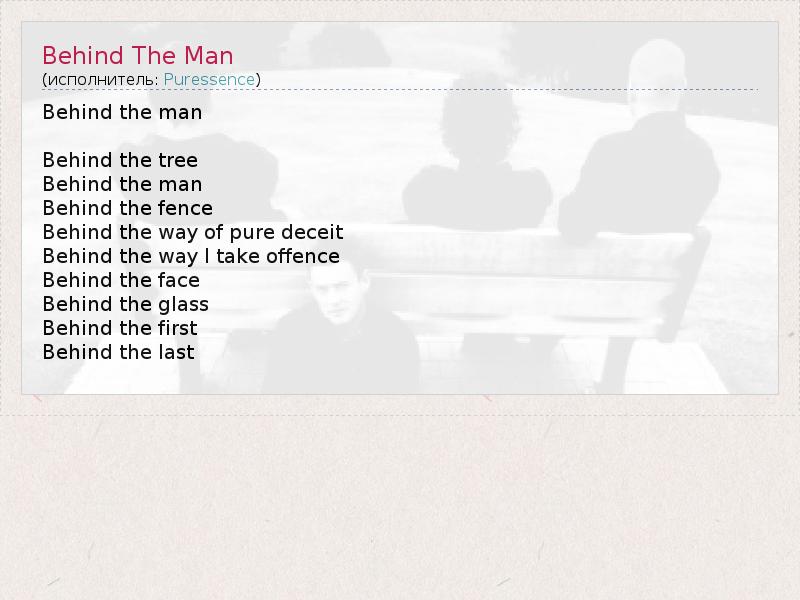 А как ты думаешь, о чем песня "Behind The Man" ?