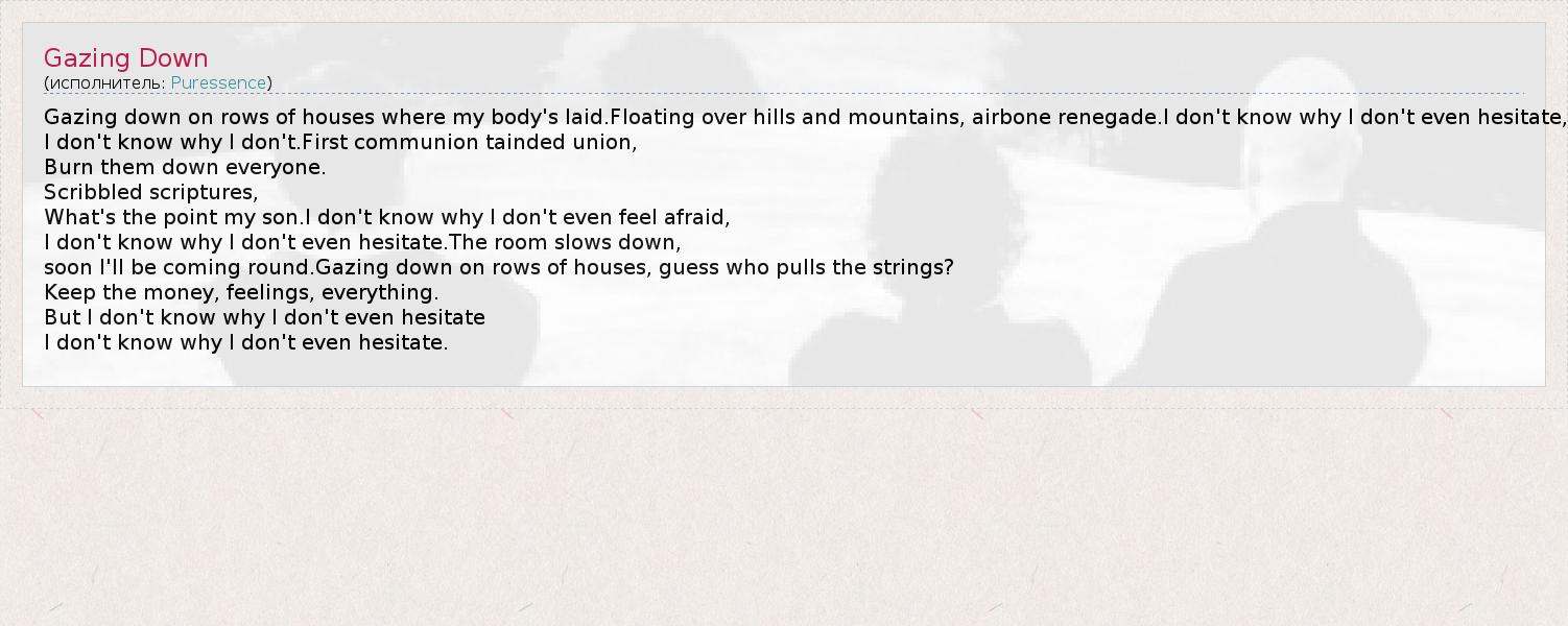 А как ты думаешь, о чем песня "Gazing Down" ?