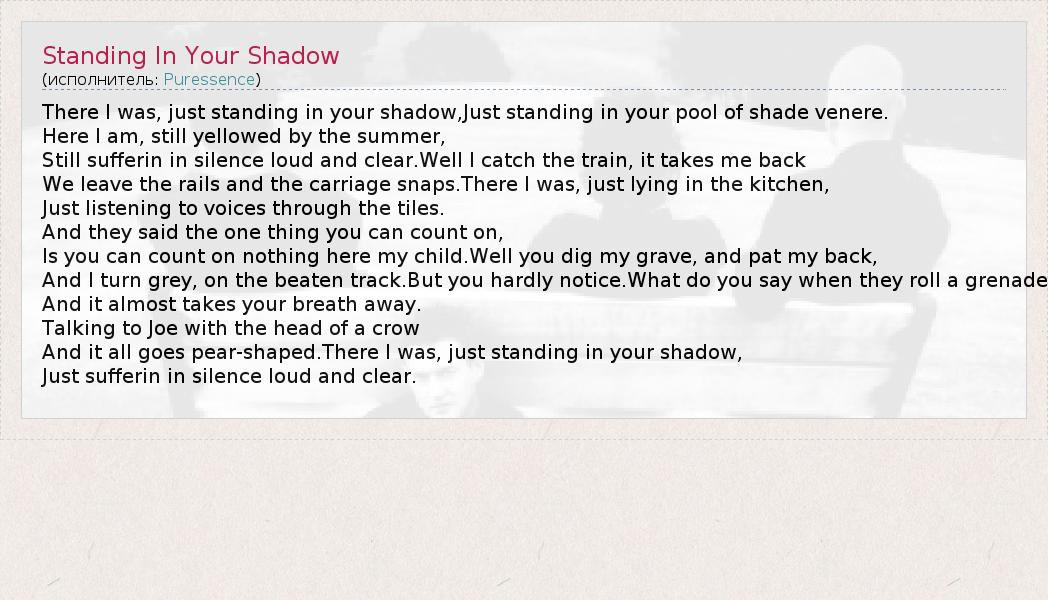 А как ты думаешь, о чем песня "Standing In Your Shadow" ?