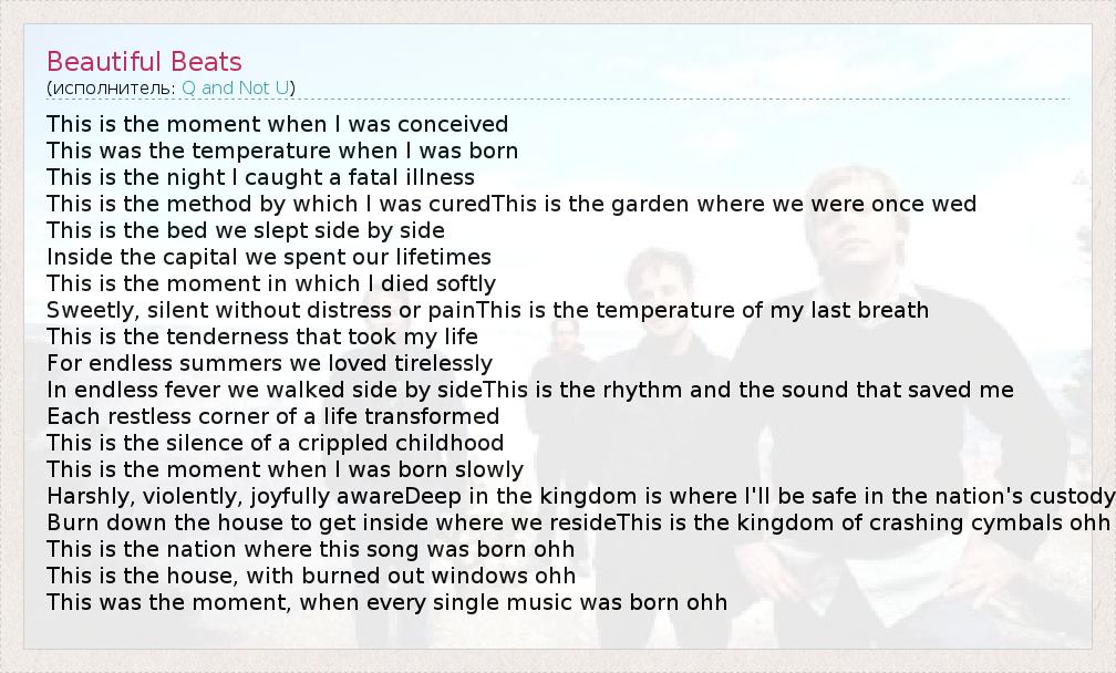 А как ты думаешь, о чем песня "Beautiful Beats" ?