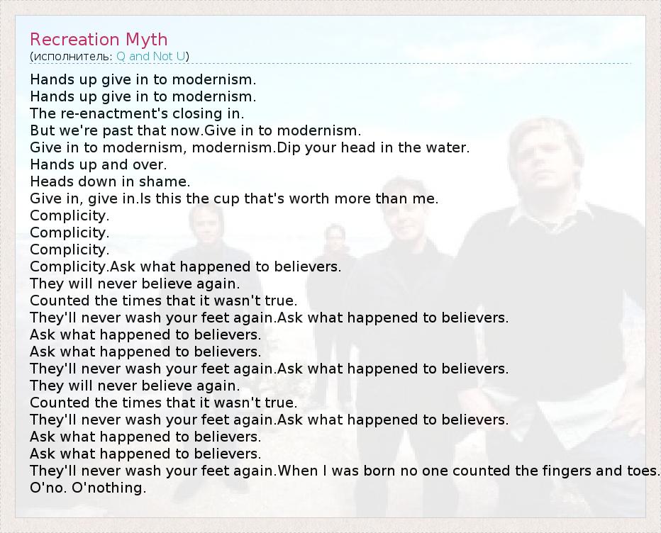 А как ты думаешь, о чем песня "Recreation Myth" ?