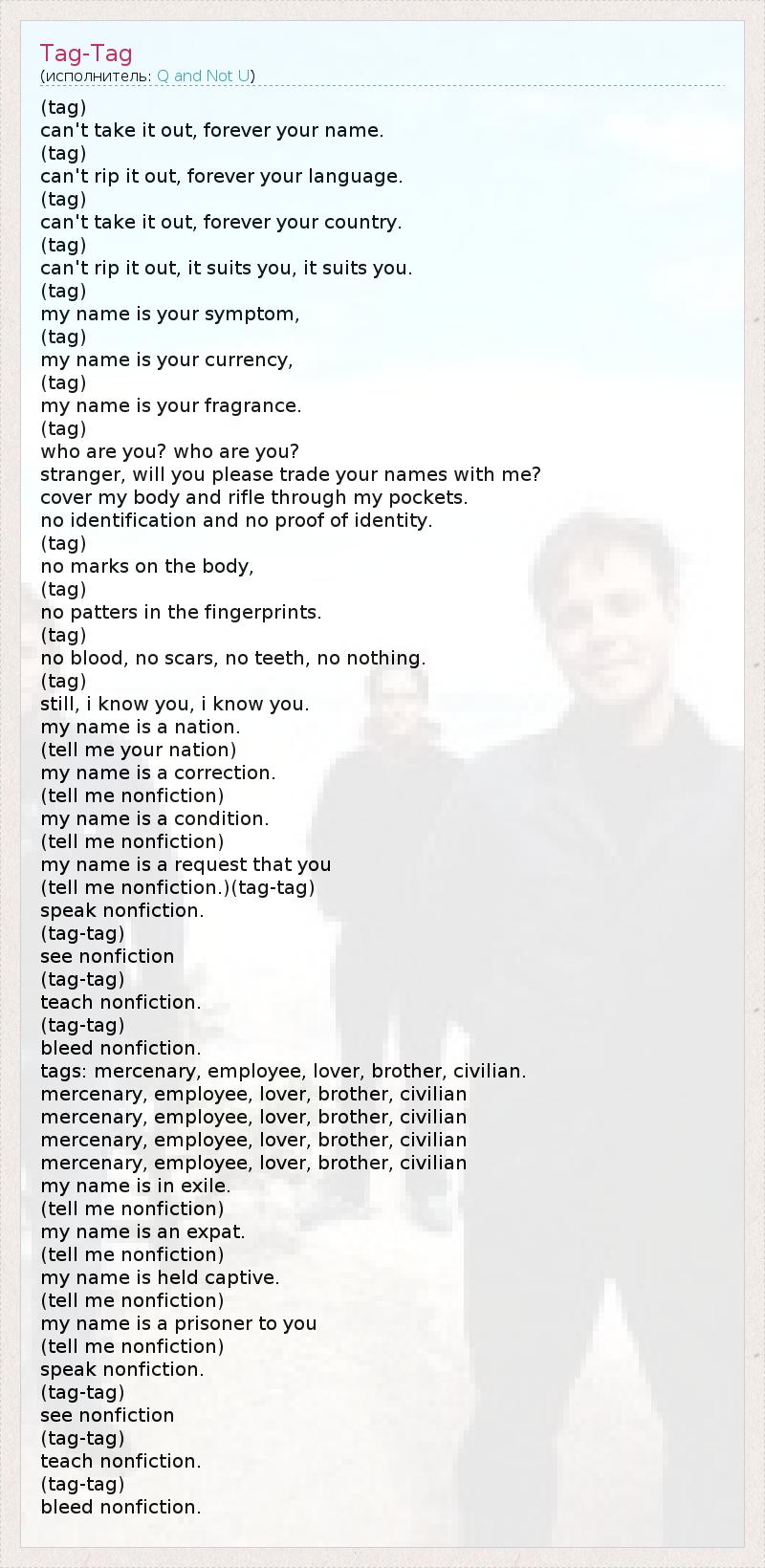 А как ты думаешь, о чем песня "Tag-Tag" ?