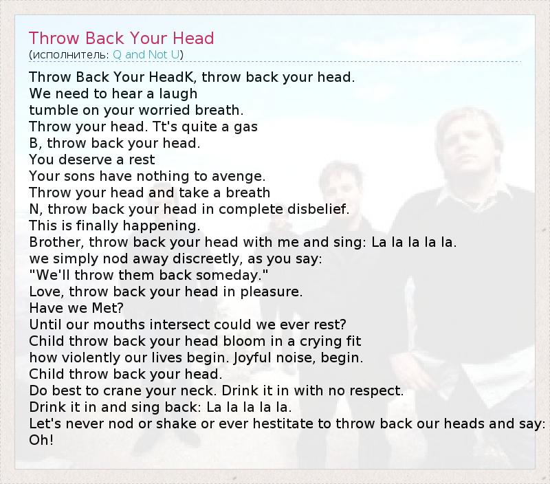 А как ты думаешь, о чем песня "Throw Back Your Head" ?