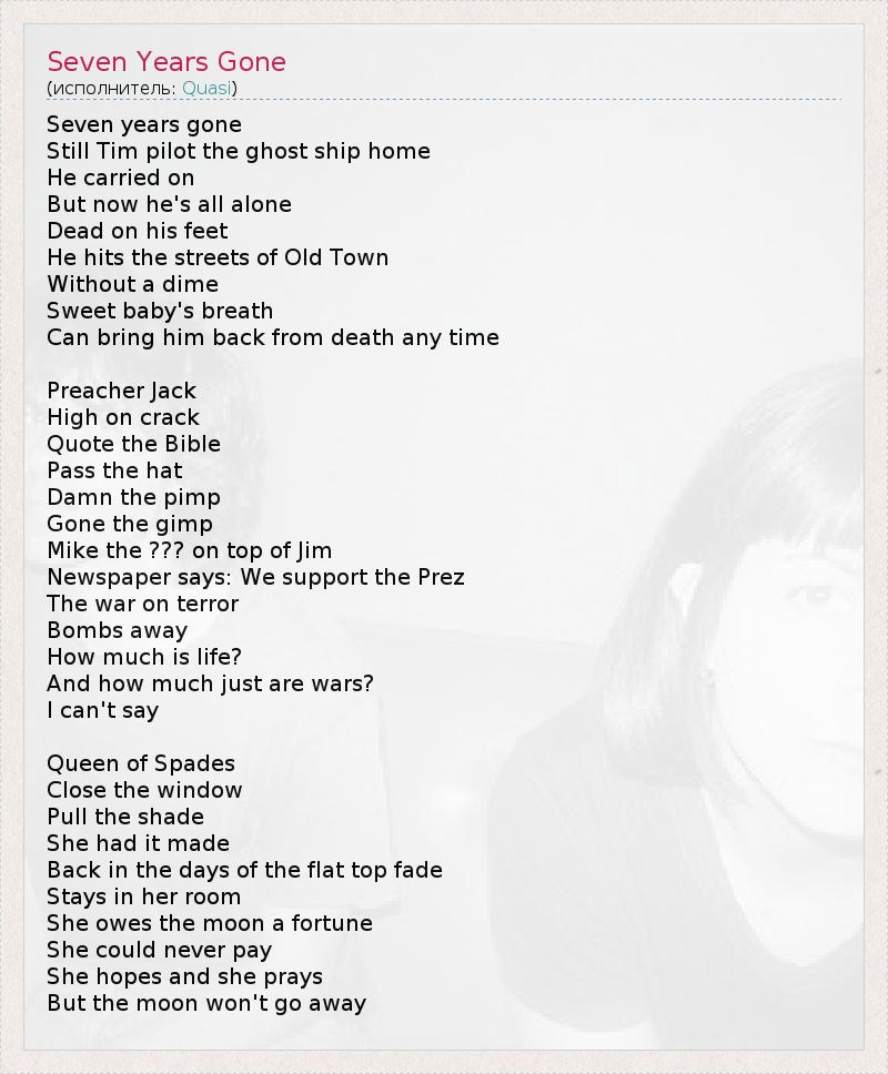 А как ты думаешь, о чем песня "Seven Years Gone" ?