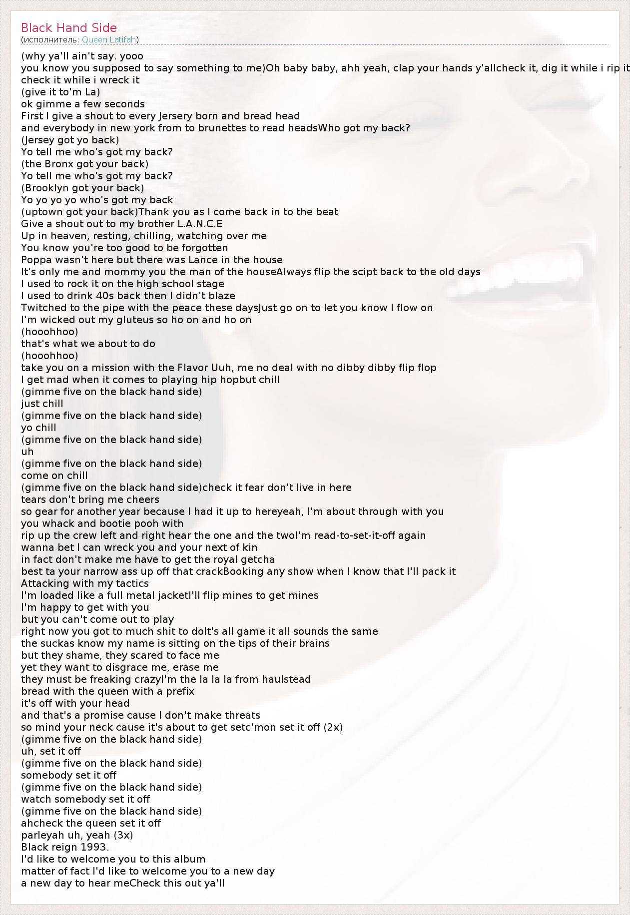 А как ты думаешь, о чем песня "Black Hand Side" ?