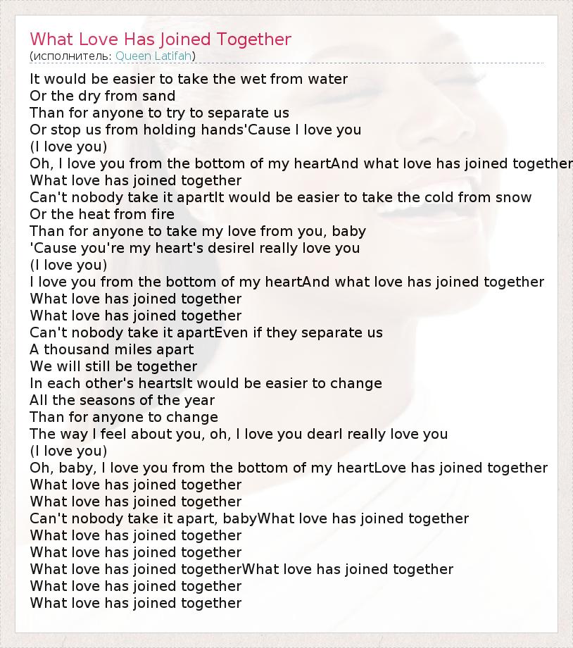 А как ты думаешь, о чем песня "What Love Has Joined Together" ?