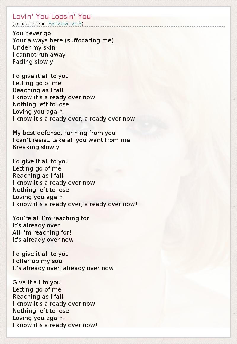 А как ты думаешь, о чем песня "Lovin' You Loosin' You" ?