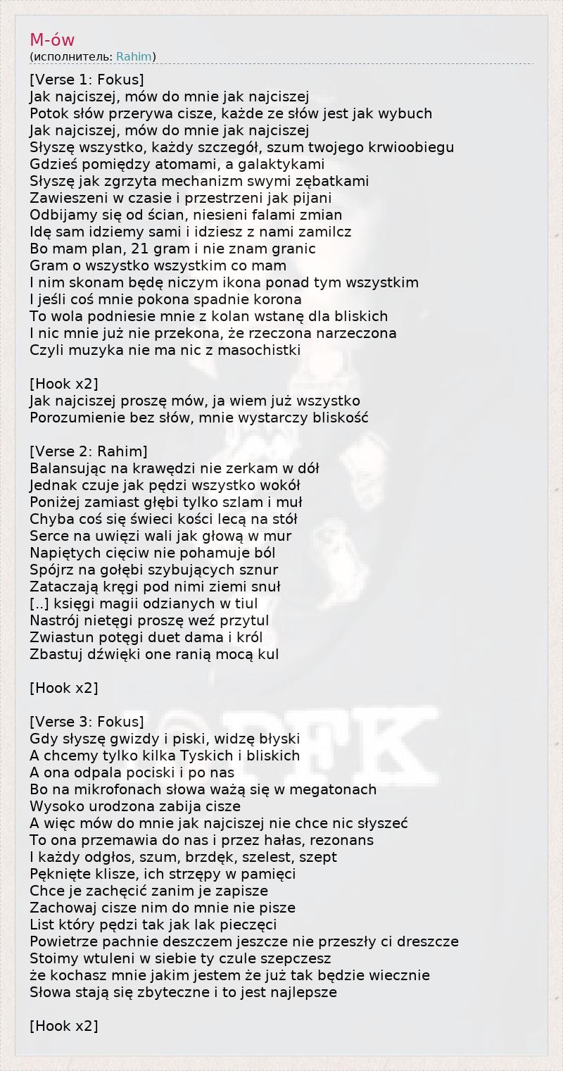 A więc mów do mnie jak najciszej nie chce nic słyszeć