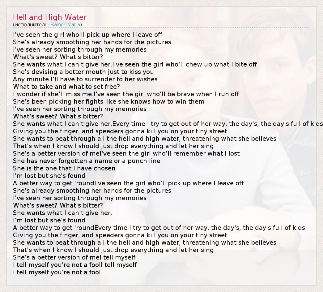 А как ты думаешь, о чем песня "Hell and High Water" ?