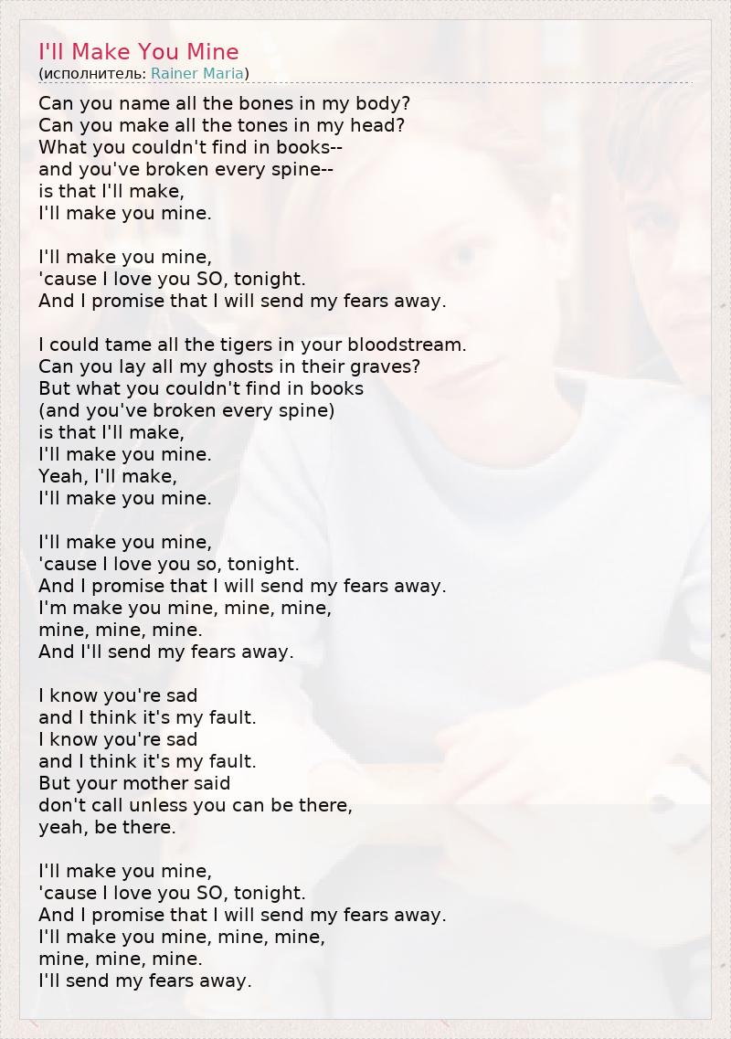 А как ты думаешь, о чем песня "I'll Make You Mine" ?
