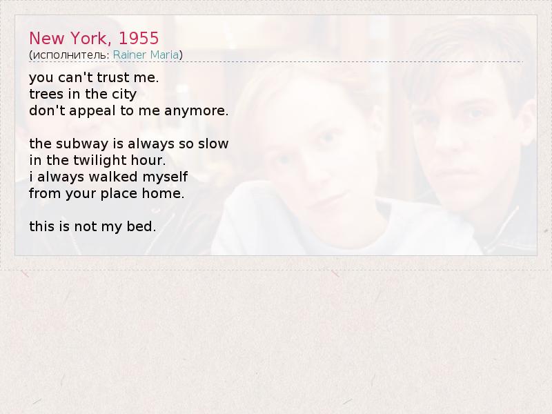 А как ты думаешь, о чем песня "New York, 1955" ?