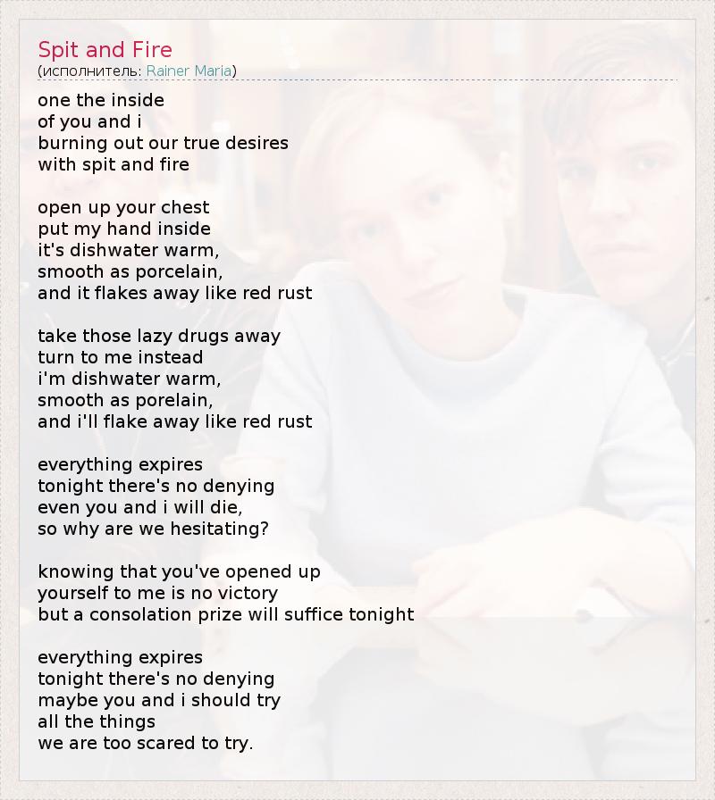 А как ты думаешь, о чем песня "Spit and Fire" ?