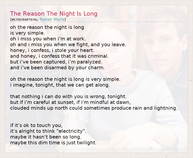 А как ты думаешь, о чем песня "The Reason The Night Is Long" ?
