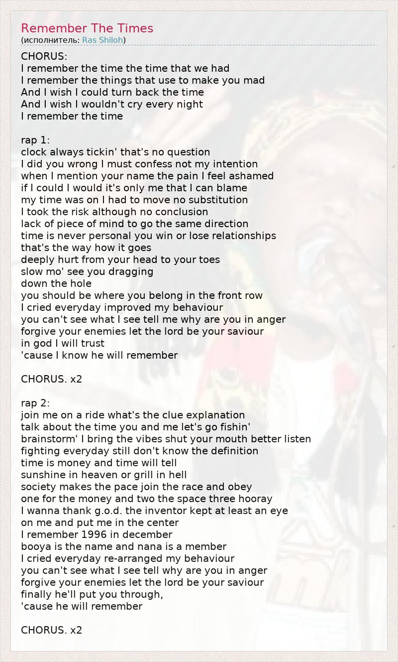 А как ты думаешь, о чем песня "Remember The Times" ?
