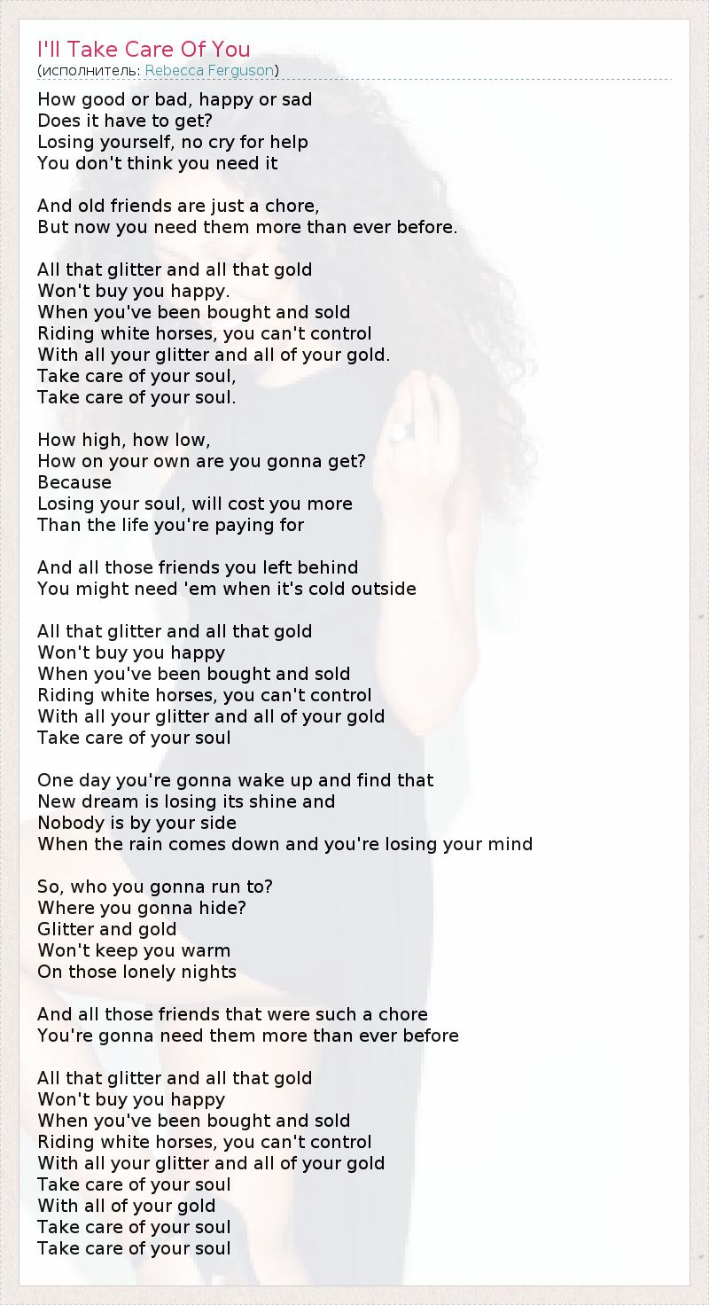 А как ты думаешь, о чем песня "I'll Take Care Of You" ?