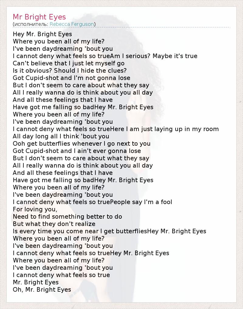 А как ты думаешь, о чем песня "Mr Bright Eyes" ?