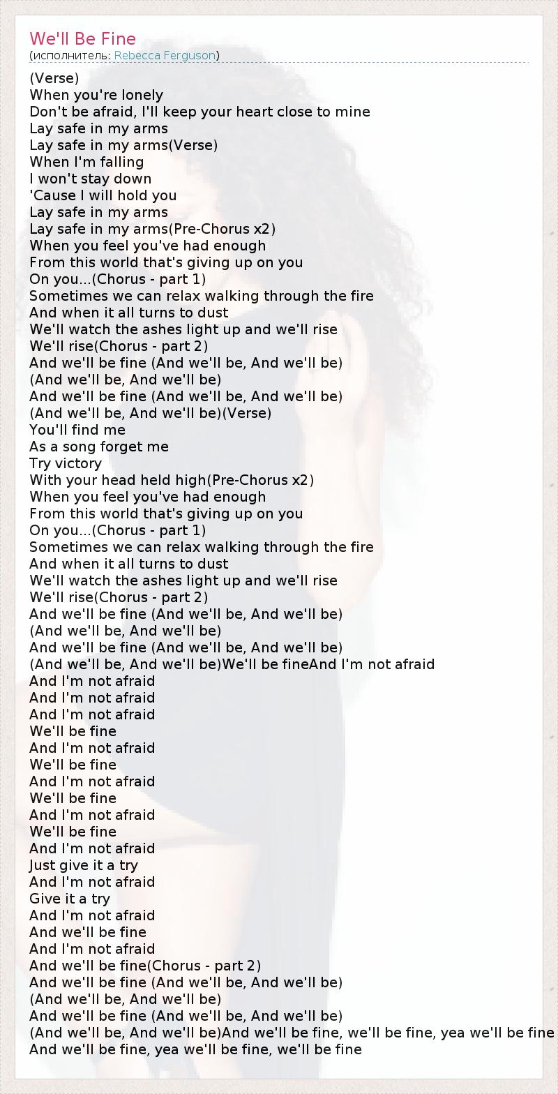 А как ты думаешь, о чем песня "We'll Be Fine" ?