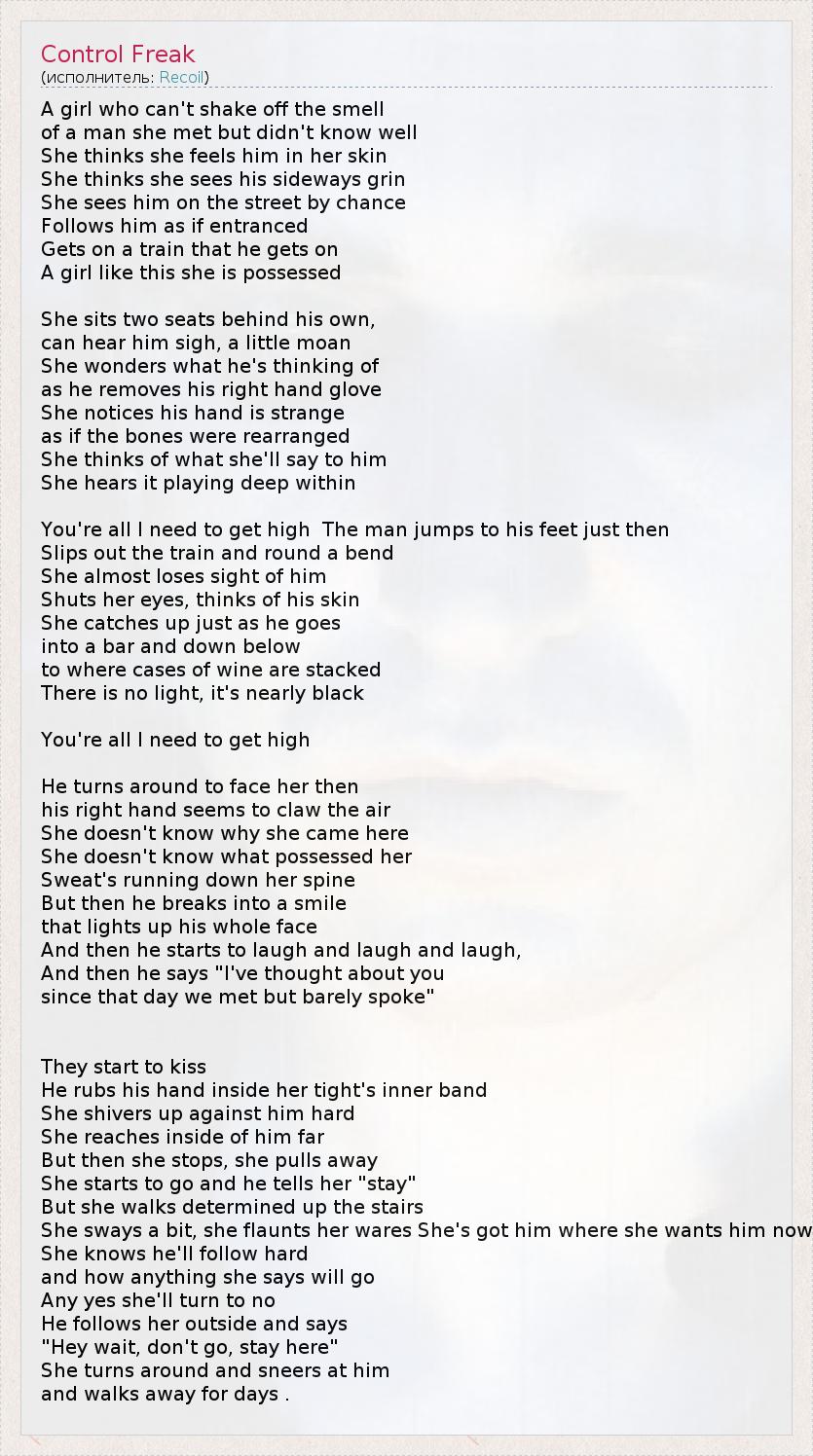 А как ты думаешь, о чем песня "Control Freak" ?