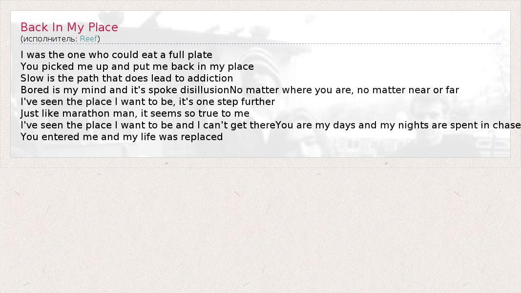 А как ты думаешь, о чем песня "Back In My Place" ?