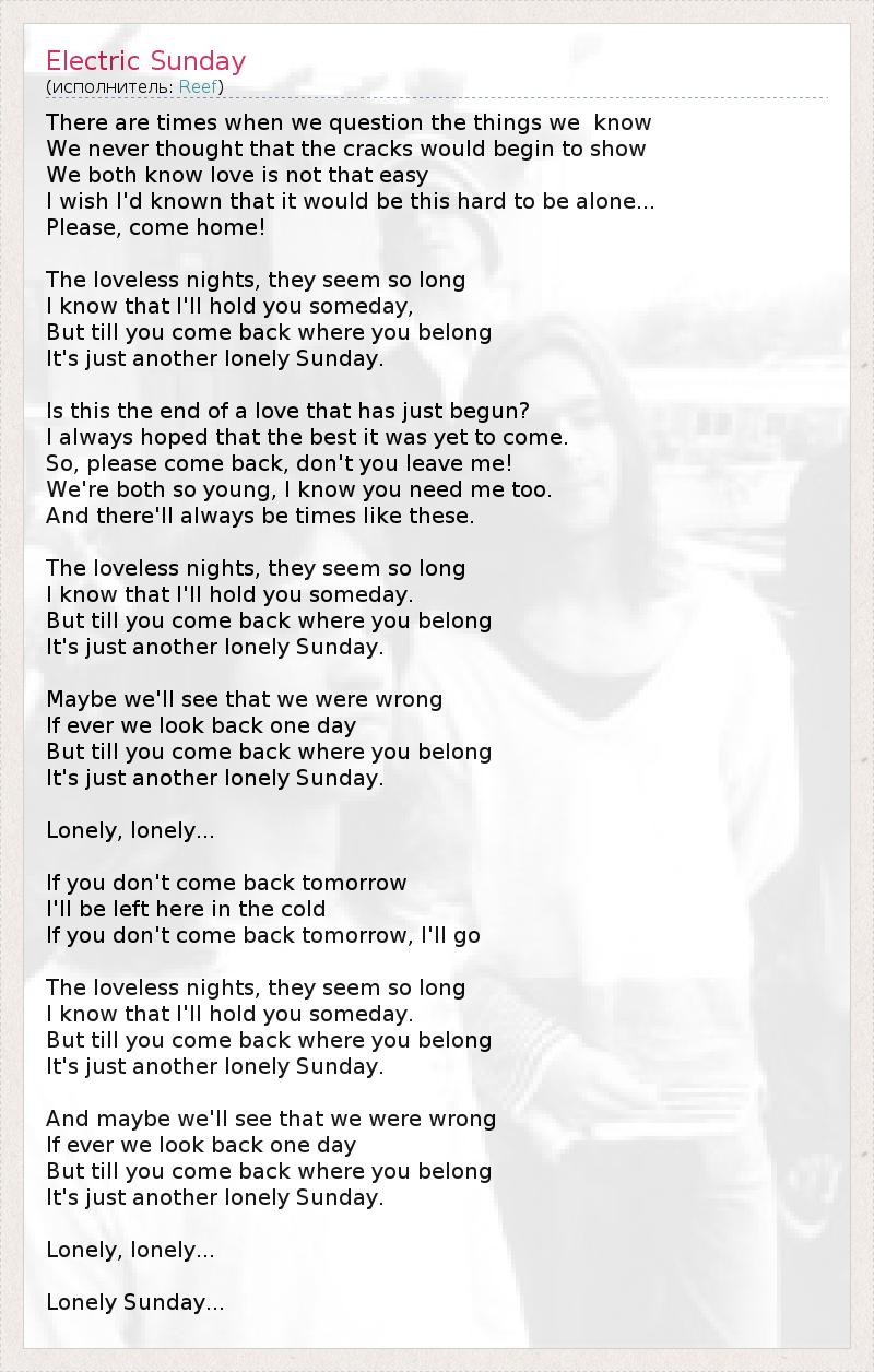 А как ты думаешь, о чем песня "Electric Sunday" ?