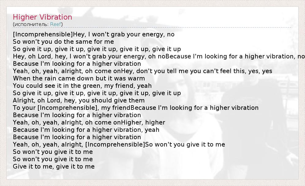 А как ты думаешь, о чем песня "Higher Vibration" ?