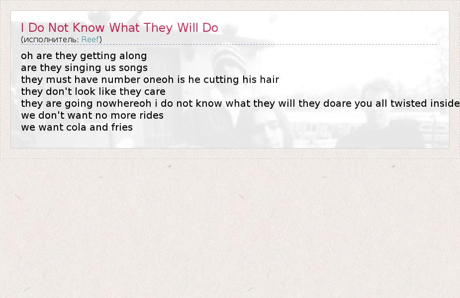 ГлавнаяИсполнителиReefI Do Not Know What They Will Do