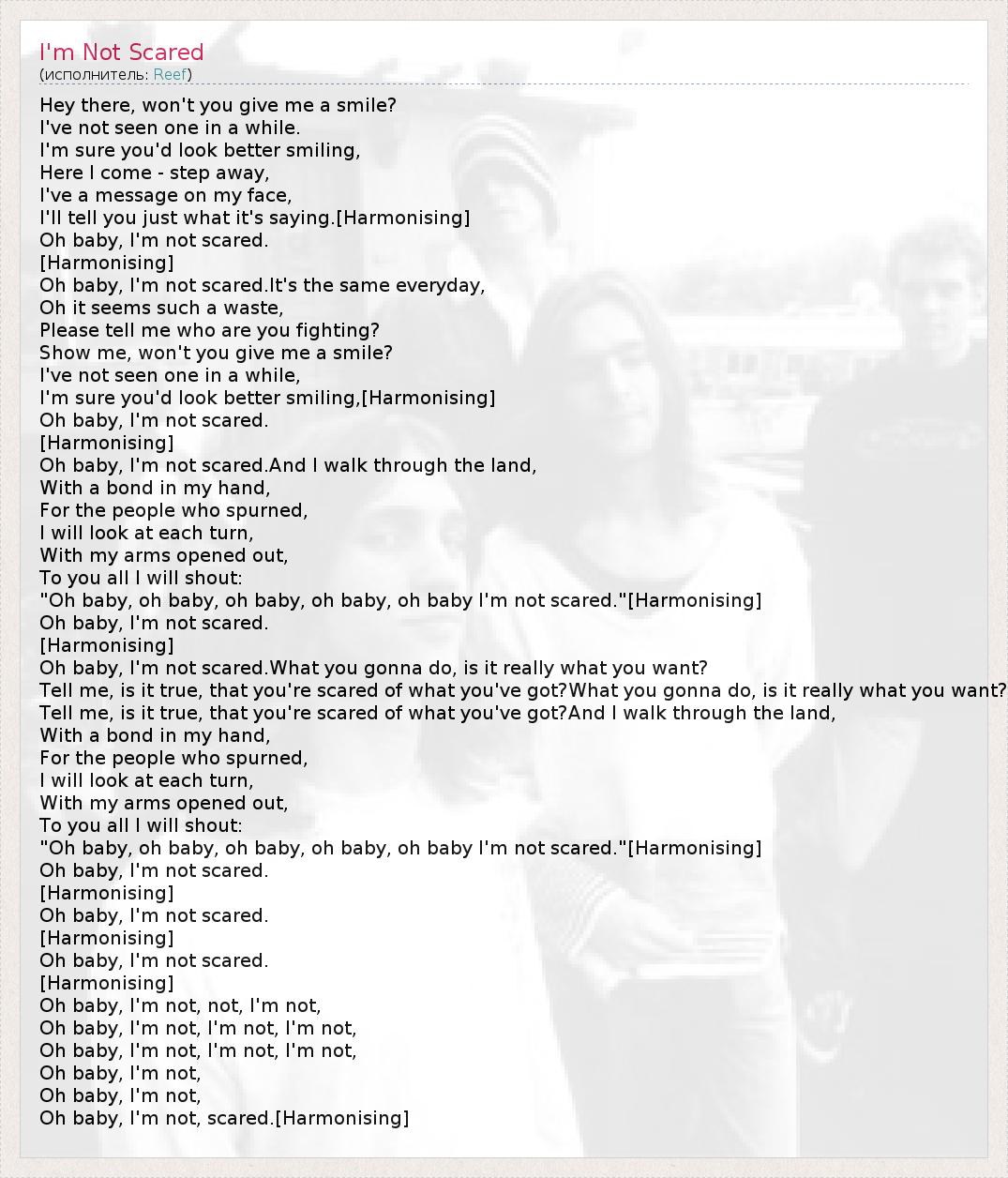 "Oh baby, oh baby, oh baby, oh baby, oh baby I'm not scared."[Harmonising]