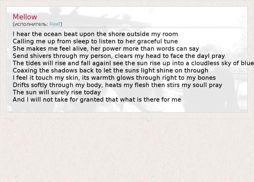 А как ты думаешь, о чем песня "Mellow" ?