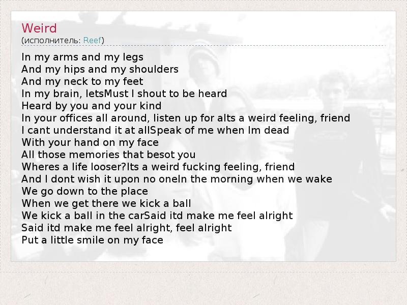 Это интересно:Четверо музыкантов, основавших эту команду, выросли в окрестностях Гластонбери. Гэри Стрингер и Джек Бессант были соседями и вместе начинали музицировать в одной фанк-хардкор-кавер-банде. К 1992 году они вместе с Кенвином Хаусом и Домиником Гринсмитом перебрались в Лондон, где играли всякие вещи Джими Хендрикса, "Massive attack", "Jane's addiction". Постепенно "REEF" перешли на современную... продолжение