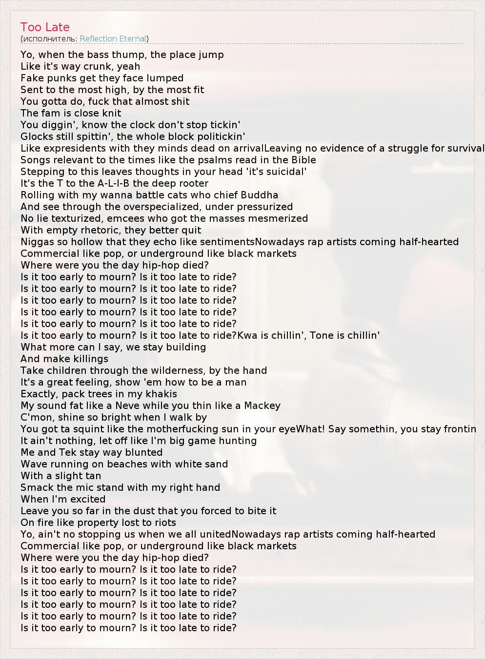 А как ты думаешь, о чем песня "Too Late" ?