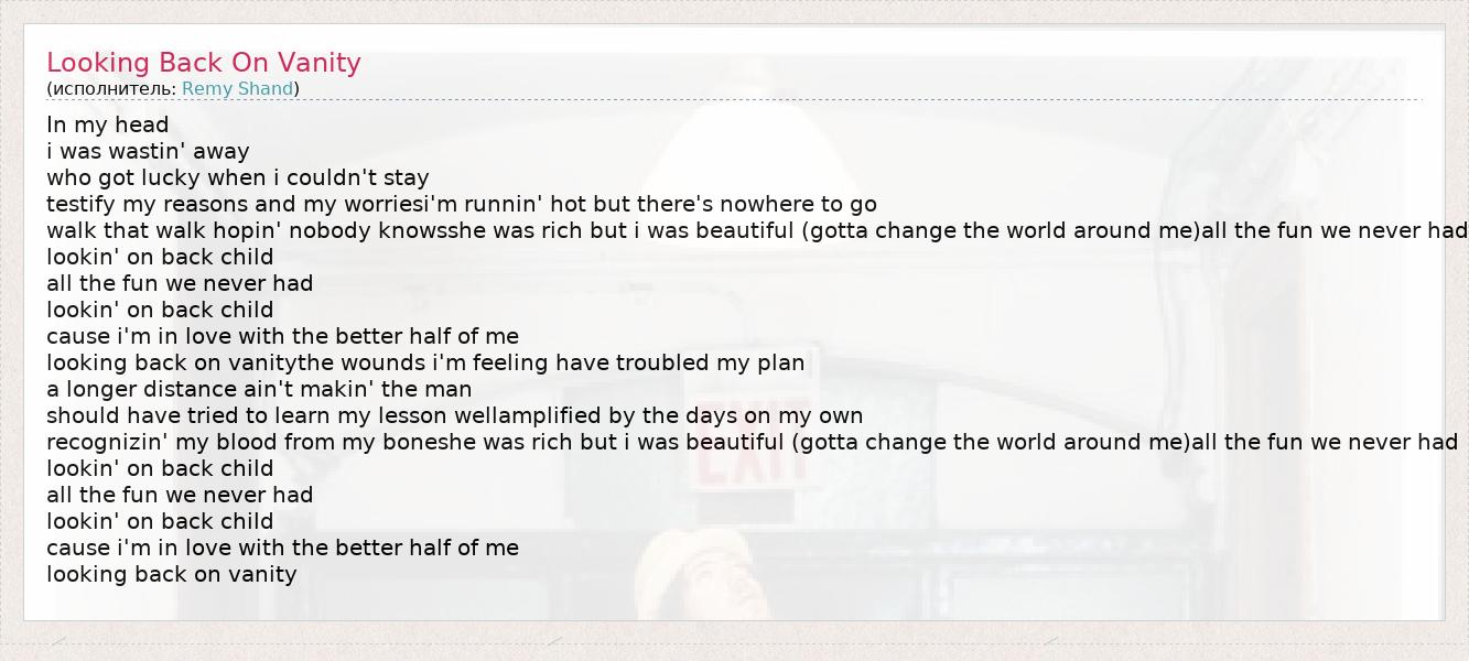 ГлавнаяИсполнителиRemy ShandLooking Back On Vanity