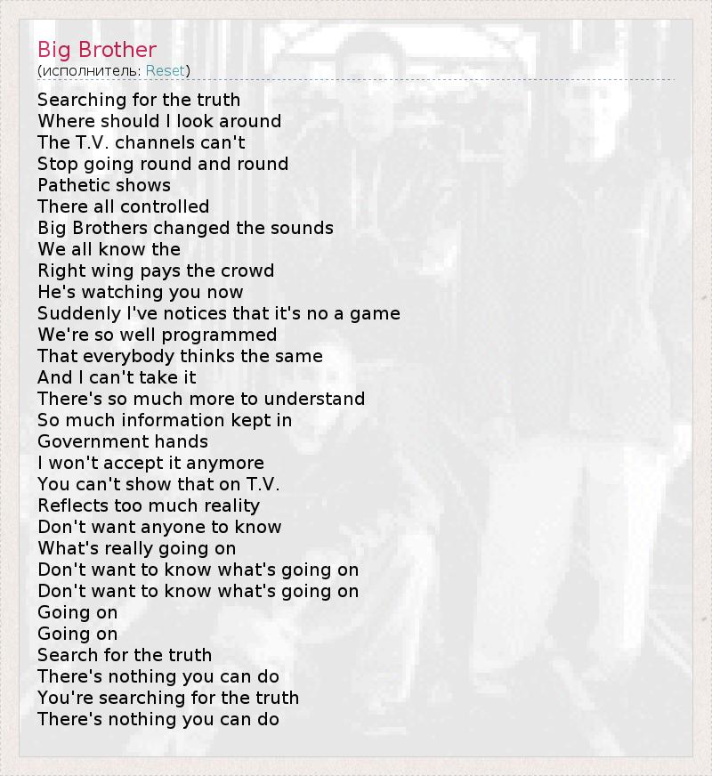 А как ты думаешь, о чем песня "Big Brother" ?